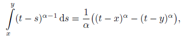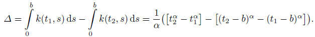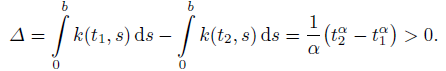 Lemma 3. For any 0 < α < 1, the kernel k of the Riemann–Liouville fractional integral operator satisfies condition (7), so our result applies also for the fractional problems of any order α.