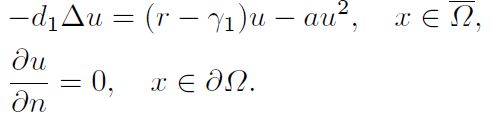 . The homogeneous Neumann boundary condition indicates that there is no population flow across the boundary.