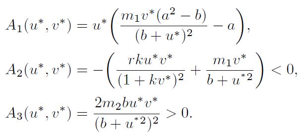 denoting the extinction of predator, while system has no positive constant steady state solution