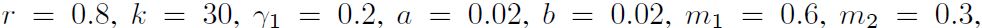 of system (1) is locally asymptotically stable, and the dynamic behaviors of system (1) is illustrated graphically in Fig. 6.