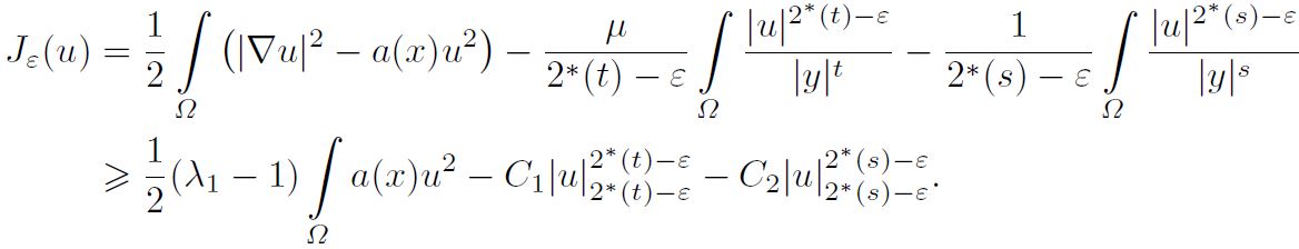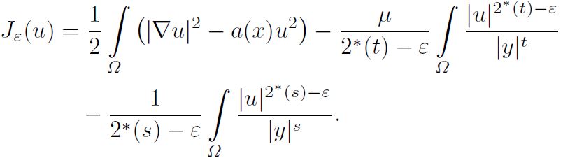 Since (1) involves the double critical Hardy–Sobolev–Maz’ya exponents, we can use the pioneering idea of Brézis and Nirenberg [5], or the concentration compactness principle of Lions [16, 17], or the global compactness of Struwe [23] to show that (2) has a critical point, then get a positive solution to (1).