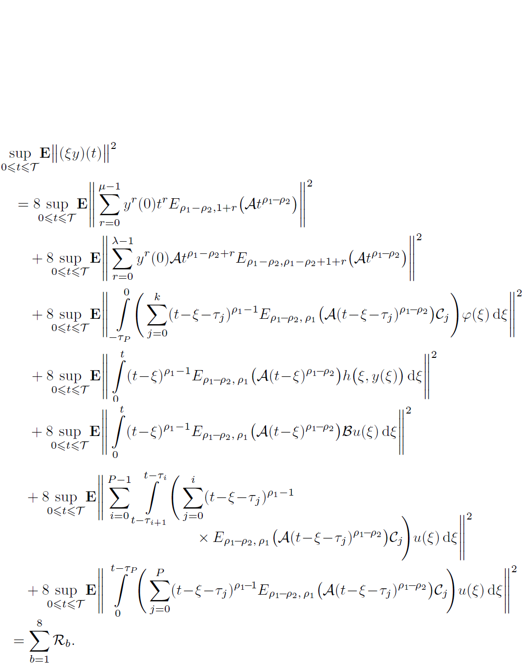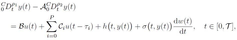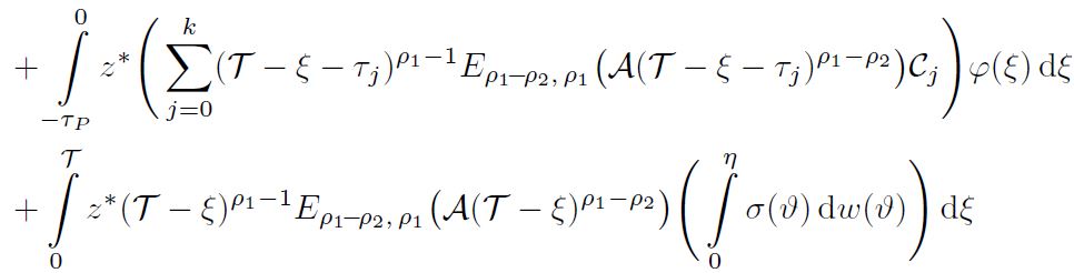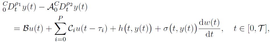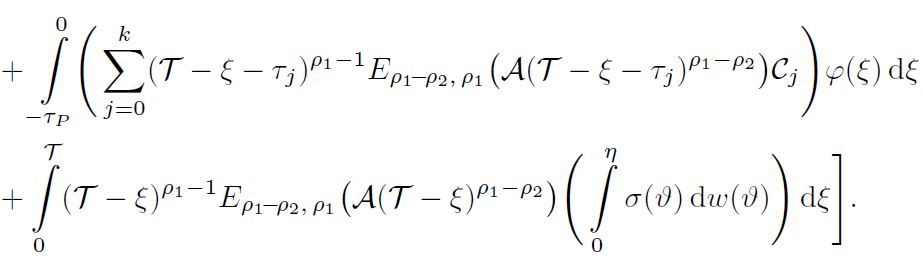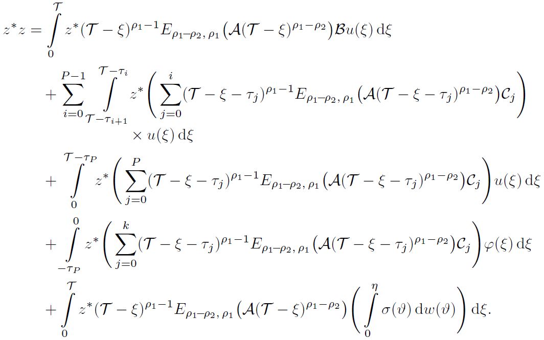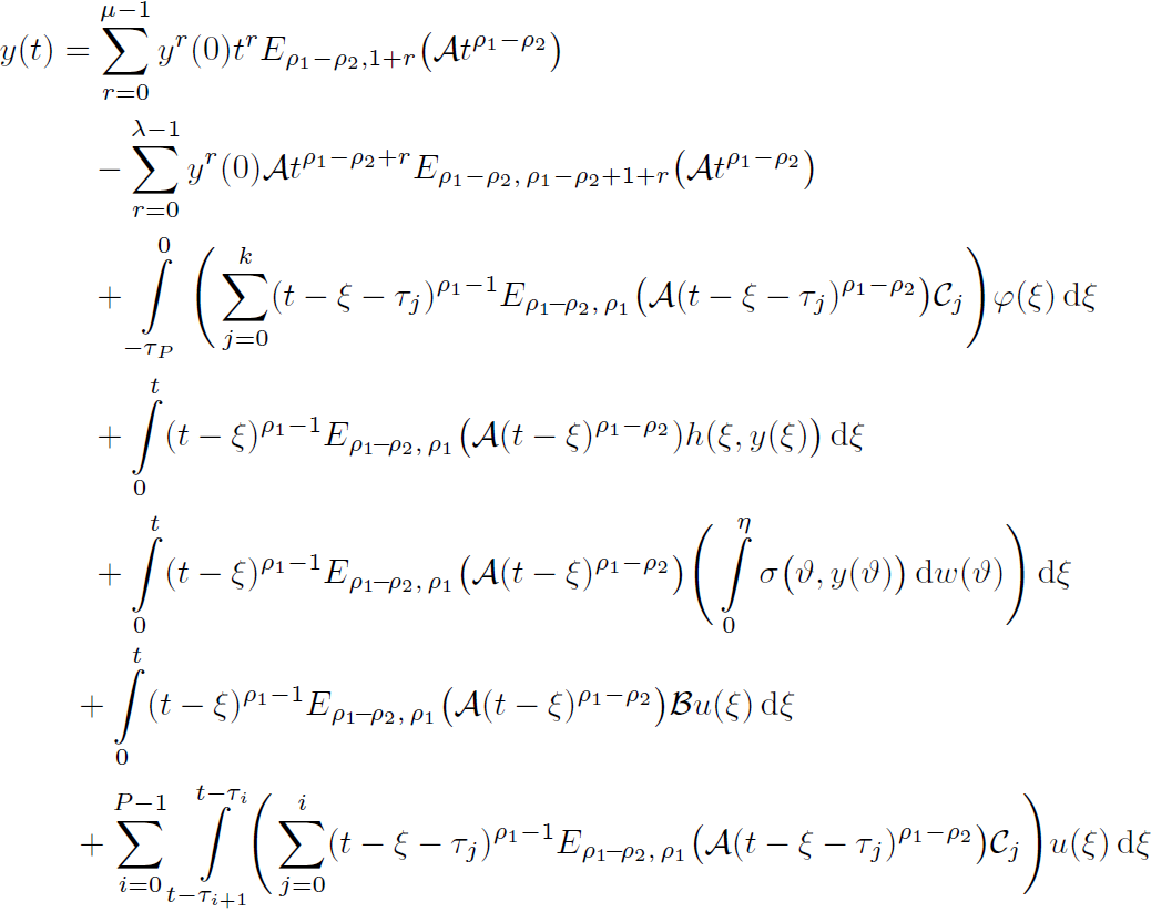 Example 2. Consider the following nonlinear damped fractional stochastic system involving multiple delays: