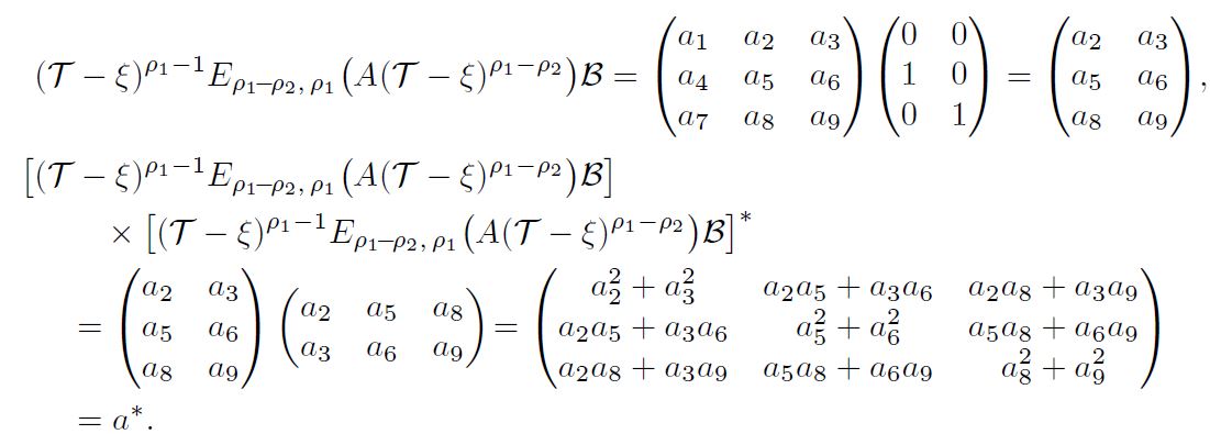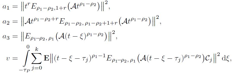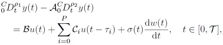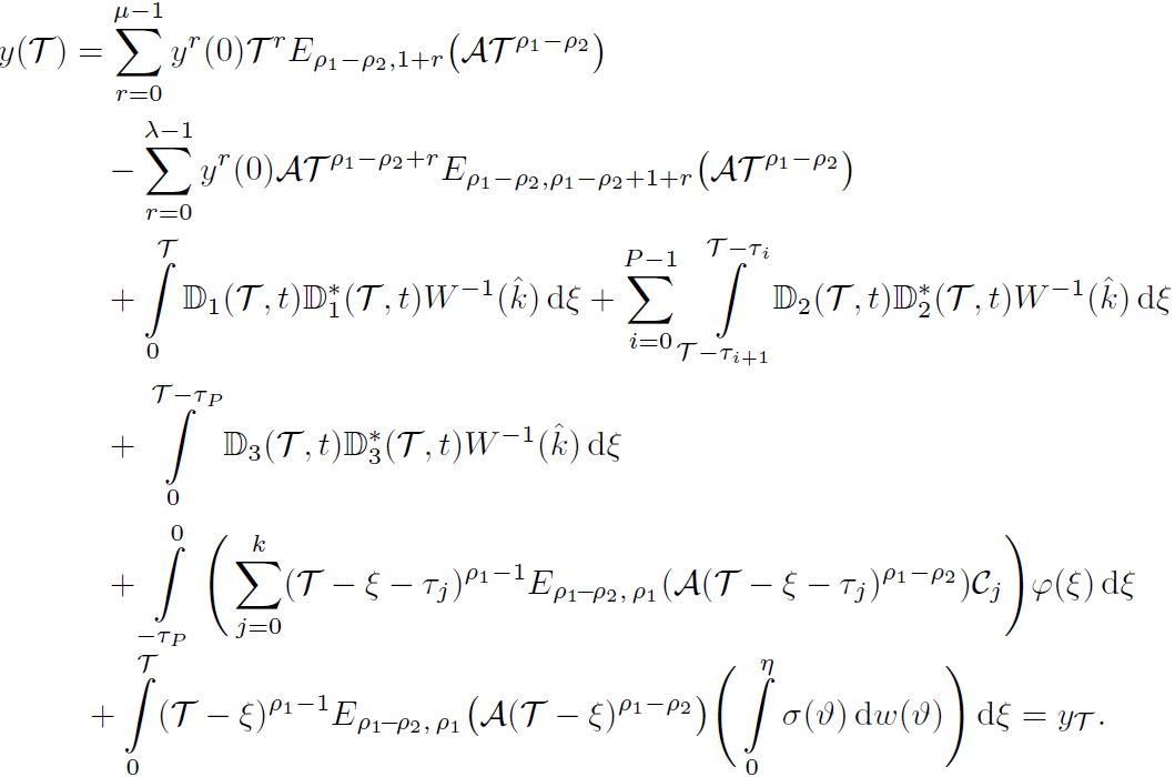 Example 1. Consider the following linear damped fractional stochastic system involving multiple delays: