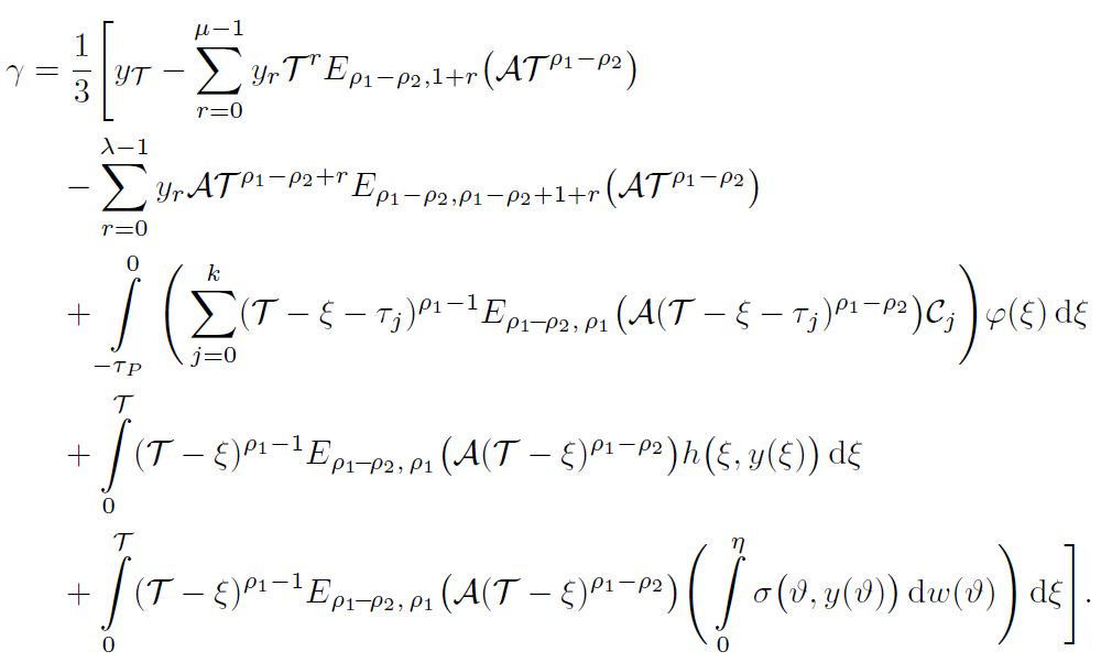 Further, Burkholder–Davis–Gundy’s inequality and fixed point theorem are utilized to derive the sufficient conditions for the nonlinear higher-order fractional damped system involving multiple delays.