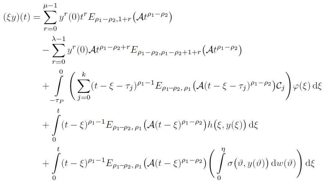 In this section, we analyze the controllability criteria of nonlinear fractional damped stochastic dynamical system (5)–(7) based on contraction mapping principle. Consider the nonlinear damped fractional stochastic system involving multiple delays of the form