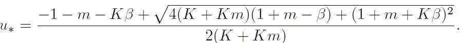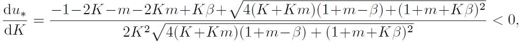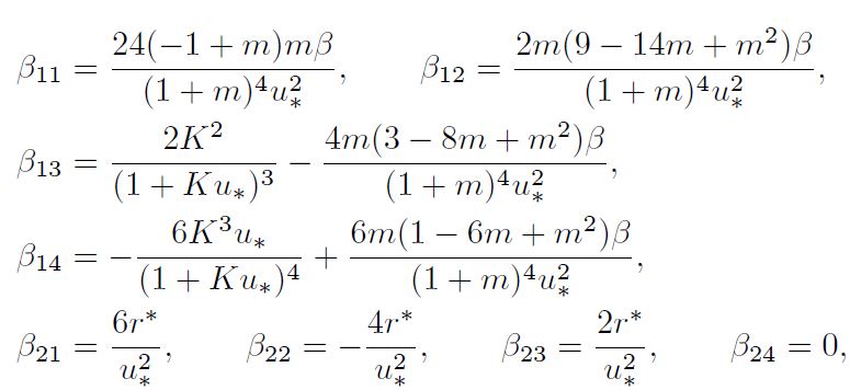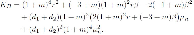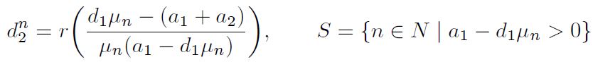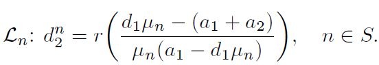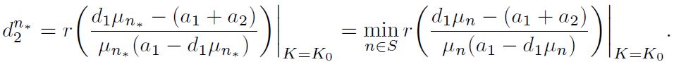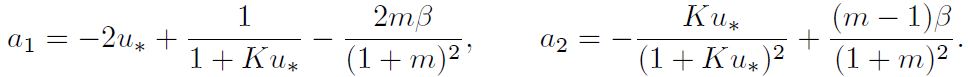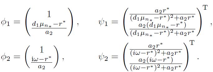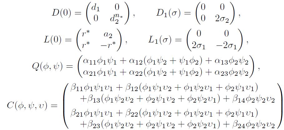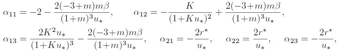 (4)Obviously, (1, 0) is a boundary equilibrium point of system (3). In this article, we mainly study the relevant properties of the coexistence equilibrium of system (3). By using the second equation of (4), we are able to obtain