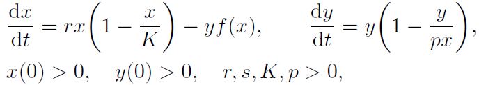 in (2) is called ratio-dependent Holling type III functional response [5, 21], and it indicates the growth rate of predator per capita, which is a function of the ratio of the number of prey to predator. The term