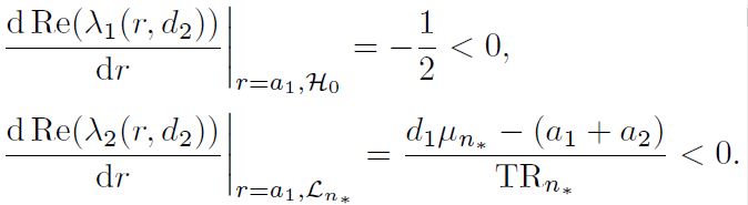 is locally asymptotically stable. Next, let us verify the transversality conditions. Suppose