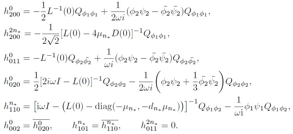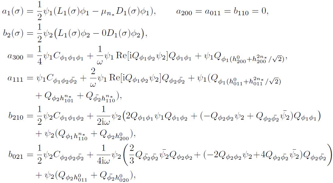 are the Turing bifurcation curves. Then the normal form restricted on center manifold for the reaction–diffusion system (12) at Turing–Hopf singularity is