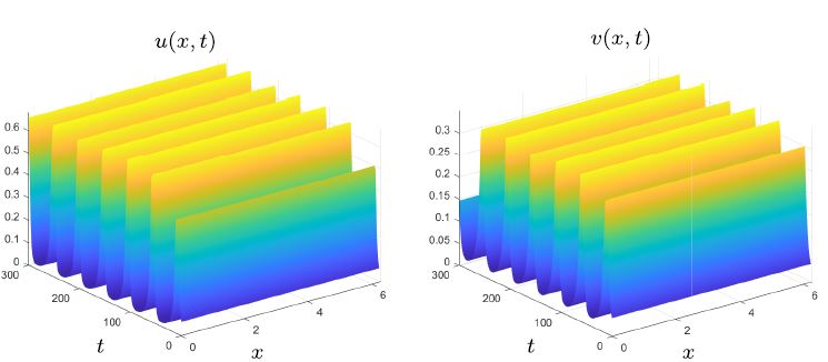 , system (3) has a stable spatially homogeneous periodic solution (see Fig. 12).