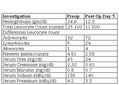After a thorough abdominal wash abdomen was closed over pelvic and subhepatic tube drains. Postoperatively he was managed in a high dependency unit with close monitoring, specifically for possible abdominal compartment syndrome. His recovery was uneventful. Anti-seizure prophylaxis and anti-embolic prophylaxis was initiated after surgery. He was given adequate pain relief with epidural analgesia. Inj Tigecycline 50 mg twice daily and Injection Teicoplanin 200 mg twice daily were administered for 5 days.