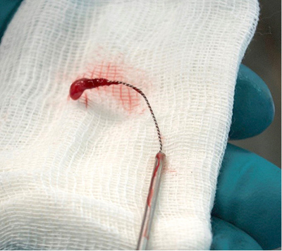 The results of treatment showed that the use of a video-assisted method using fistuloscopy, in addition to the treatment stage, has an important diagnostic value that influenced intraoperative tactics. Using fistuloscopy, it was possible to clearly topically identify the internal opening of the fistula, branches of the fistula and blindly ending residual cavities. The method allowed correcting preoperative diagnostic inaccuracies in the topography and complexity of the fistula course. The treatment stage, as the VAAFT method developed clinical experience, necessarily included electrocoagulation of the fistula canal, removal of necrotic tissues using a special pointed brush (Figure 3), stitching the internal opening of the fistula, and sealing the residual channel with bio-glue.