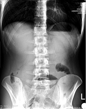 The plain radiograph showed signs of small bowel obstruction (Figure 1).