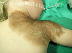 3. Pearson GD. Congenital Hairy Nevi: Overview, Clinical Presentation, Differential Diagnosis. Available at: < https://www.emedicine.medscape.com/article/1295033-overview >;. Accessed: 10 April 2018.