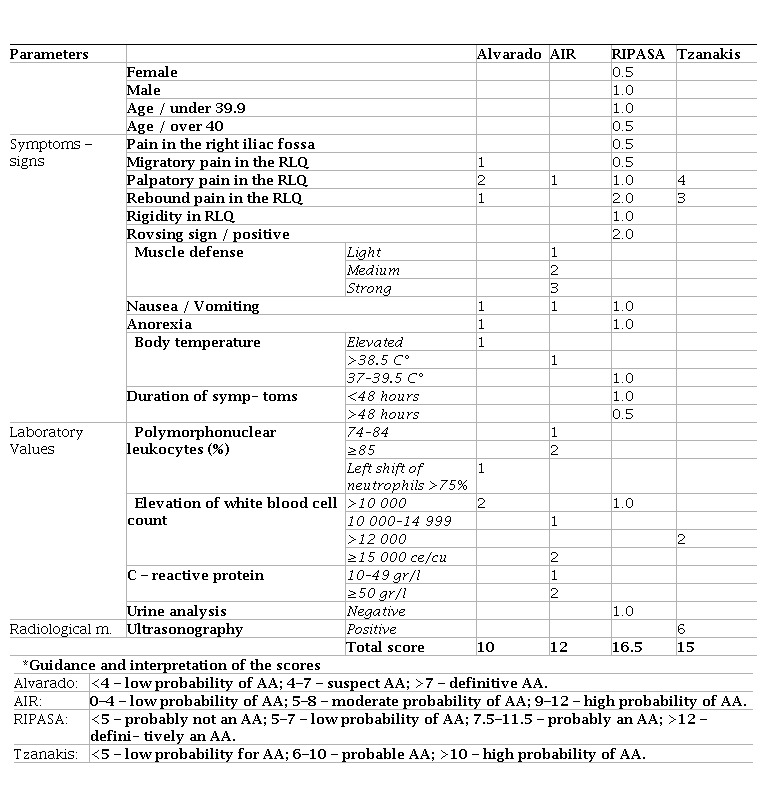 Keywords: acute appendicitis, scoring systems, diagnosis, appendectomy.