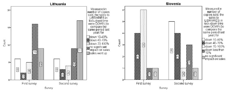 Lithuania was the only country with increased sales to libraries as almost every fourth respondent declared increase in sales. This could be explained by the fact that Lithuanian Government reacted to the COVID-19 lockdown by an increased funding for libraries.