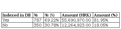 The data on granted subsidies are published every year on the Ministry’s website16 in the form of Excel sheets with the information on publication title, author or editor, publisher, scientific field, and the amount granted in Croatian Kuna’s (HRK).17 Since additional information on books, journals, and publishers was needed to perform the required analyses, other data sources were also used. Data on books and journals were collected from the publishers’ websites and library catalogues. Data on journal indexing was collected from the Web of Science, Scopus and Medline databases. Public registries for companies, non-profit organizations, and scientific institutions were also used to collect data on publishers.