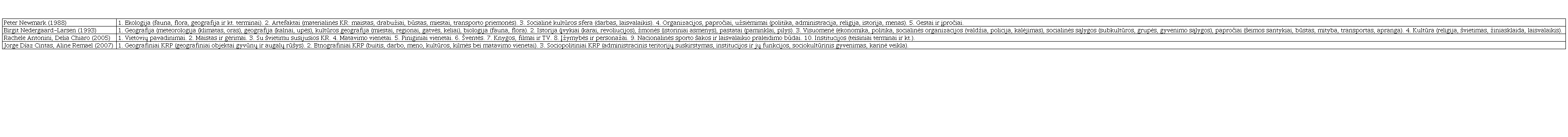Tam, kad būtų lengviau atpažinti KRP ir tirti jų vertimą, pravartu aptarti, kokios yra KRP kategorijos. Įvairių autorių išskiriamos KRP tipologijos pateiktos 1-oje lentelėje.