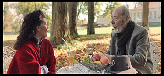 A similar case is connected with the scene where the man is telling the woman about his secret plan to escape the nursing home: