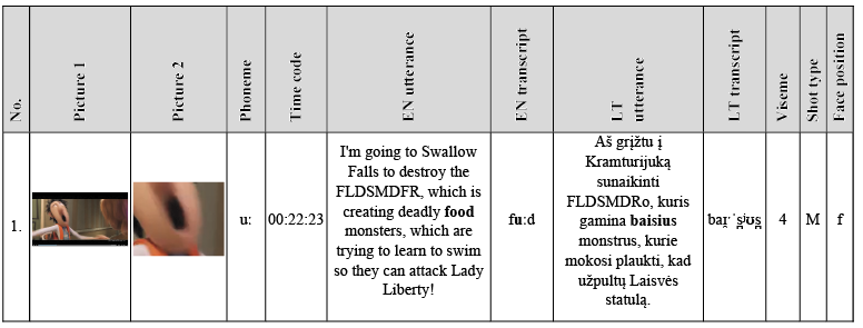 Although one film is not enough to warrant generalisations about dubbing practice in Lithuania, with more attention and further analysis, it can become a significant source of useful data for dubbing development.