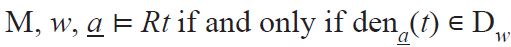 (we also assume that everything in D belongs to some D.). Then, we add variable assignment and denotation functions in the usual way and we say: