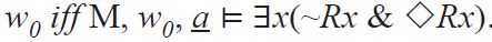 says that in some world . some essence is realized and it is not realized in , viz. (1) is true in