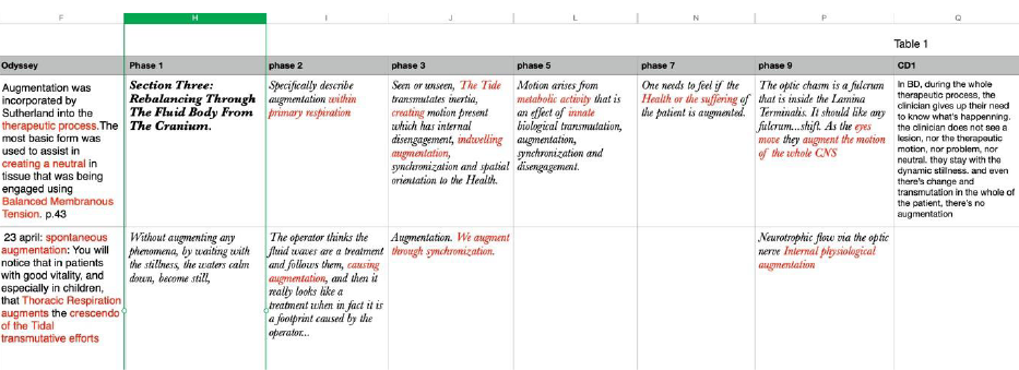 Voici un autre exemple d’analyse : le terme « fluid » en ostéopathie biodynamique signifie « substance ayant un haut potentiel de transformation ». En plus, on trouve de nombreuses extensions de cette définition qui nous permettent de mieux comprendre ce concept. Pour en citer quelques-unes (puisque la liste complète est longue) :
