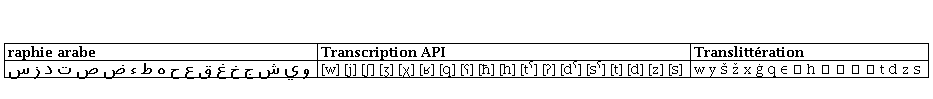 Les consonnes p, v et g qui n’existent pas dans la langue arabe classique seront représentées respectivement par p, v et g.