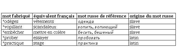 Trois groupes d’« intrus » figuraient dans le texte. Tout d’abord, il y avait des mots faisant référence à la langue russe.
