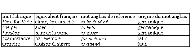 Nous ne pouvons qu’avancer des hypothèses sur le fonctionnement du mécanisme de discrimination, mais dans le cas de *upséter, 67% des participants ont dû justement être déroutés par l’aspect phonique « étranger » du mot et par le préfixe up- typique de l’anglais mais inexistant en français. Quoi qu’il en soit, parmi les anglicismes du texte, ces deux mots d’origine germanique ont été le plus aisément détectés. Dans le groupe des plus forts, le taux de détection s’élevait à 100% pour *helper et à 85% pour *upséter.