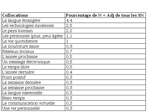 Mots clés: collocation, cooccurrence, SN, corpus, FLE.