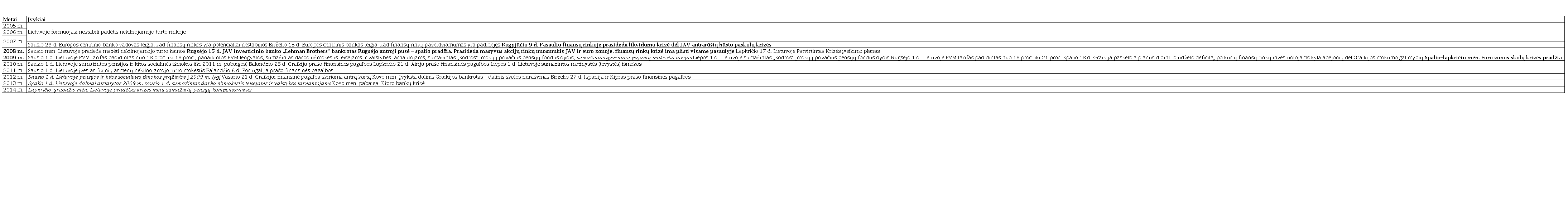 The primary goal of this paper is to examine the coverage of the 2008-2009 economic crisis in the Lithuanian online media as well as its relationship to the actual economic situation and perception of media consumers. The theoretical basis for this research is made up of the theories of agenda-setting and framing. The coverage of the media is assessed on the basis of the corpus of economic reporting in 2006–2014 in two Lithuanian media sources, the news agency BNS and DELFI news website, by analysing the volume and the tone of the reports. The coverage in the media is then compared to some statistical economic indicators. The main findings of the paper are the following: