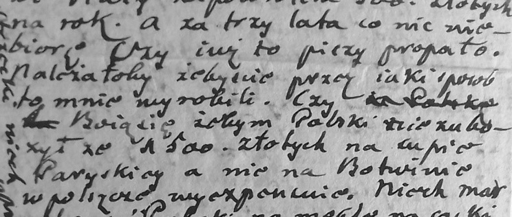 9. ...A za trzy lata co nic niebiorę. Czy iuż to piszy propało. Należało by żebyscie przez iaki sposob to mnie wyrobili. Czy boią się, żebym Polski niezubozył ze 1500. Złotych na zupie Paryskiey a nie na Botwinie w polszcze wyexpensuie (VUB RS, F2-DC33_28)