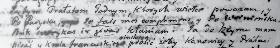 10. Ja tym Prałatom Godnym, ktorych wielce powazam, y Po Parysku, je fais mes complimens, y Po Worniensku Buk sweykas ir givas kłaniam (VUB RS, F2-DC42_33-15).