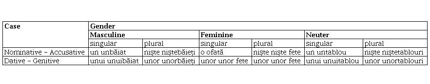 Being an inflected language, in Romanian, there is a strict agreement between the article and the noun or the adjectives it determines. Identifying the gender, the number and the case of the noun correctly is essential when using the definite and the indefinite article.