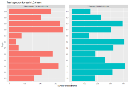 The connection between the topics and the propaganda content becomes even more obvious due to use of documents’ metadata, which, in our case, include a defined sub-period, as well as information about who was the President of Ukraine at the time when the document appeared.