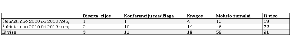 • Naujumas – literatūros šaltiniai, kurie buvo paremti empiriniais tyrimais, turėjo būti paskelbti ne anksčiau nei nuo 2000 metų;