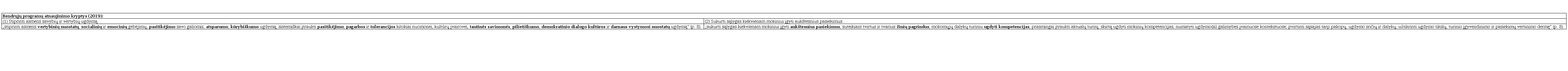 Bendrųjų programų atnaujinimo gairėse (Dėl bendrųjų programų atnaujinimo gairių patvirtinimo, 2019 m. lapkričio 18 d. Nr. V-1317, 2019) siūloma stiprinti asmens savybių ir vertybių ugdymą bei sukurti sąlygas pasiekti aukštesnius ugdymo rezultatus (žr. 2 lentelę). Šiame apraše detalizuojama, kokias asmens savybes asmuo turėtų pasiekti švietimo pagalba: vertybines nuostatas; socialinių ir emocinių gebėjimų; pasitikėjimo savimi; atsparumo įtakai; kūrybiškumo; pagarbos bei tolerancijos; tautinės savimonės; pilietiškumo; demokratiškumo bei tvarumo principų.