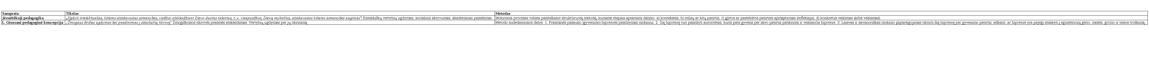 Remiantis pirminiu šaltiniu „Ignaco pedagogika“3, ugdymo tikslas yra ugdyti intelektualias, kitiems atsidavusias asmenybes, visiškai atskleidžiant Dievo duotus talentus, t. y. visapusiškos, Dievą mylinčios, atsidavusios kitiems asmenybės augimas (Sadauskas, 2012, p. 15). Jėzuitiškoji ugdymo samprata įdomi ir tuo, kad joje siūlomas ir savitas ugdymo metodas, perimtas iš šv. Ignaco Lojolos dvasinių pratybų. Dvasinės pratybos – įvairių pratimų ir užduočių rinkinys, sukurtas paties šv. Ignaco, juo siekiama gilinti ir stiprinti žmogaus santykį su Dievu4. Esminė schema, kuria remiantis vykdomas ugdymo procesas jėzuitiškosios ugdymo sampratos mokykloje, susideda iš kelių pagrindinių dėmenų: mokymosi konteksto, patirties, apmąstymo, veiklos ir įvertinimo. Atkreiptinas dėmesys, kad metodas sukurtas vadovaujantis principu, jog ugdymo procese svarbiausias yra asmuo. Būtent todėl metodo centre – mokytojas ir mokinys bei jų santykio dinamika (Sadauskas, 2012). Mėginant apibrėžti jėzuitiškąjį ugdymo metodą atkreiptinas dėmesys į keletą esminių metodo punktų: