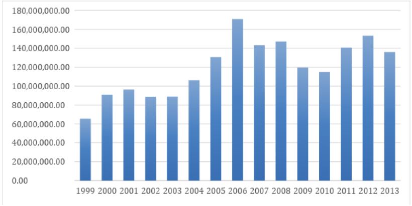 Un ejemplo de esto es que el gasto público real se duplicó desde 1999 hasta 2013 como muestra la siguiente gráfica.