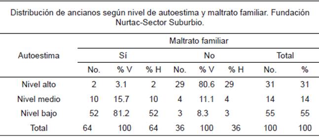 Se consiguió visualizar las relaciones existentes, con el envejecimiento propio de la edad y su ritmo, los cuales puede variar, independientemente, de considerar las valoraciones de sus capacidades funcionales; demostrando, que su afectación en la autoestima tiene vinculación directa con la calidad de vida y funcionalidad familiar, principalmente en las mujeres adultas mayores, que bajo la realidad estudiada conllevan situaciones poco favorables.
