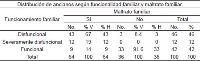 Desde el punto de vista funcional, se considera a la familia, la instancia en la cual se cumplen las funciones necesarias para el desarrollo psicosocial de los miembros que la conforman. Su importancia se ve aumentada a medida que envejecen los adultos, "condicionados en esta etapa de la vida por la reducción de su actividad social, lo que incrementa para el anciano el valor del espacio familiar, que siempre será el insustituible apoyo" (Imbert, 2011). Desde una mirada integral, las condiciones y dinámicas familiares funcionales, conforman la red que sustentara el apoyo social, afectivo, informacional e instrumental del adulto mayor, para un envejecimiento sano. En caso contrario las manifestaciones serían obvias; la investigación denotó que, a mayor edad, mayor condición de experimentar situaciones de maltrato, además de una correlación significativa, entre la variable maltrato y disfuncionalidad a nivel familiar.