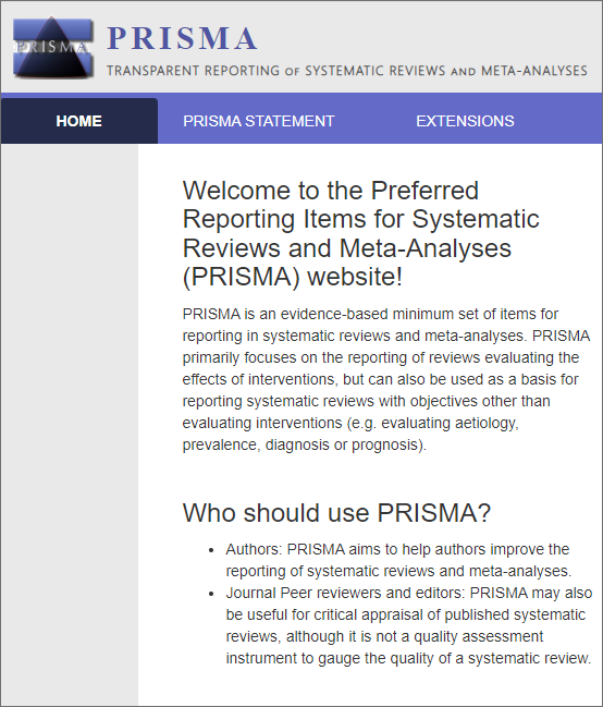 Review of website: Preferred Reporting Items for Systematic Reviews and Meta-Analyses (PRISMA) PRISMA 2020 Statement