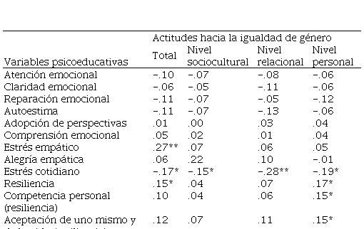 Correlación entre actitudes hacia la igualdad de género y otras variables psicoeducativas en alumnado universitario