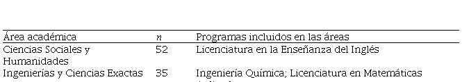 Nota: Esta división por área académica se tomó de la clasificación de las universidades de origen de los participantes.