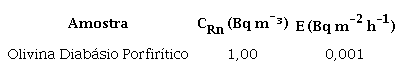 A taxa de exalação de radônio por unidade de área do diabásio (E) é definida como o fluxo de radônio liberado na superfície do material. Essa taxa foi calculada usando a fórmula proposta por ( Barton & Ziemer 1986) e ( Al-Jarallah 2001):