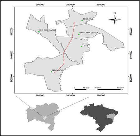 Important factors for the choice of this transmission line are the geomorphological characteristics and the land cover and use of the relief of the region used as a security area of the enterprise. The main uses and occupations of the land along this transmission line are capoeiras, APP - Permanent Preservation Area, vegetation, riparian forest, pastures and the energy substations of the São Francisco Hydroelectric Company (CHESF) located, respectively, in Ibicoara and Bruma. The altimetric variation along the line guideline is greater than 800 meters.