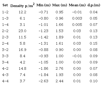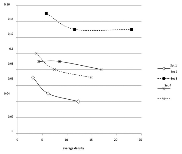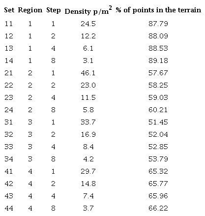 In each study region, the density of the set of points was progressively reduced, as shown in Table 4. The value of the density in each reduced set depends on the density of the original set.