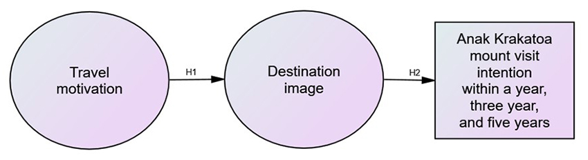 This study aimed to examine the impact of travel motivation and destination image on the stage of intention to visit Anak Krakatau Mount in Indonesia. However, stage intention in this study is referred to intention in the next three different periods, including one, three, and five years. However, intention in the next a year was dropped due to insignificance in measuring the structural model. This study found a significant effect of travel motivation on destination image, and the significant effect of destination image on the stage of intention both in the next three and five years.