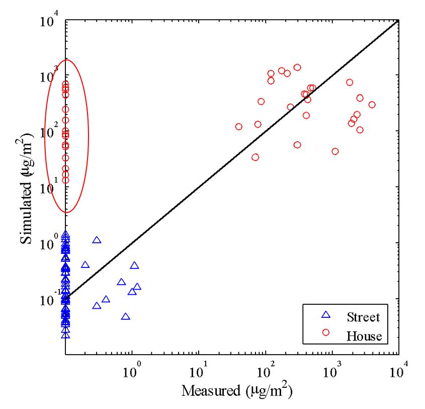 Further implications include the necessity to perform additional or even regularly repeated field sampling campaigns. Only such data could ultimately confirm the hypothesis of lead accumulation in houses and, if done frequently enough, provide sufficient information to evaluate/parameterize the effects of rainfall washing. For this purpose, we recommend the installation of a number of fixed air filters and sediment/dust traps for regular (e.g., monthly to capture seasonal effects) sampling under controlled conditions throughout the urban area.